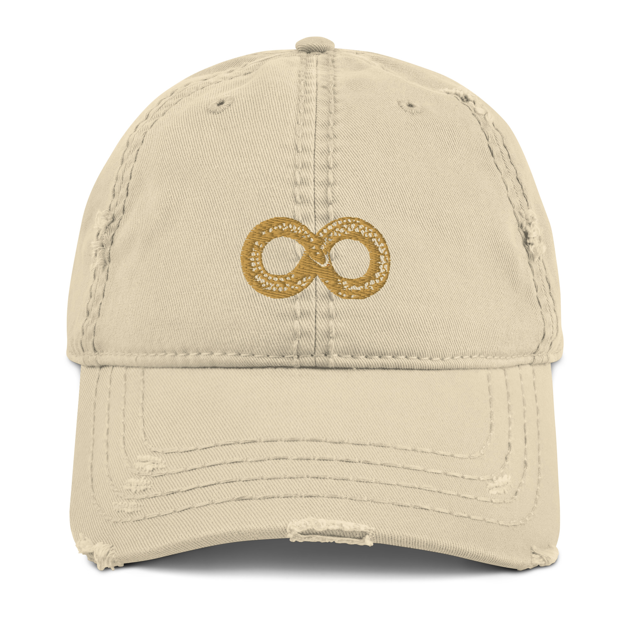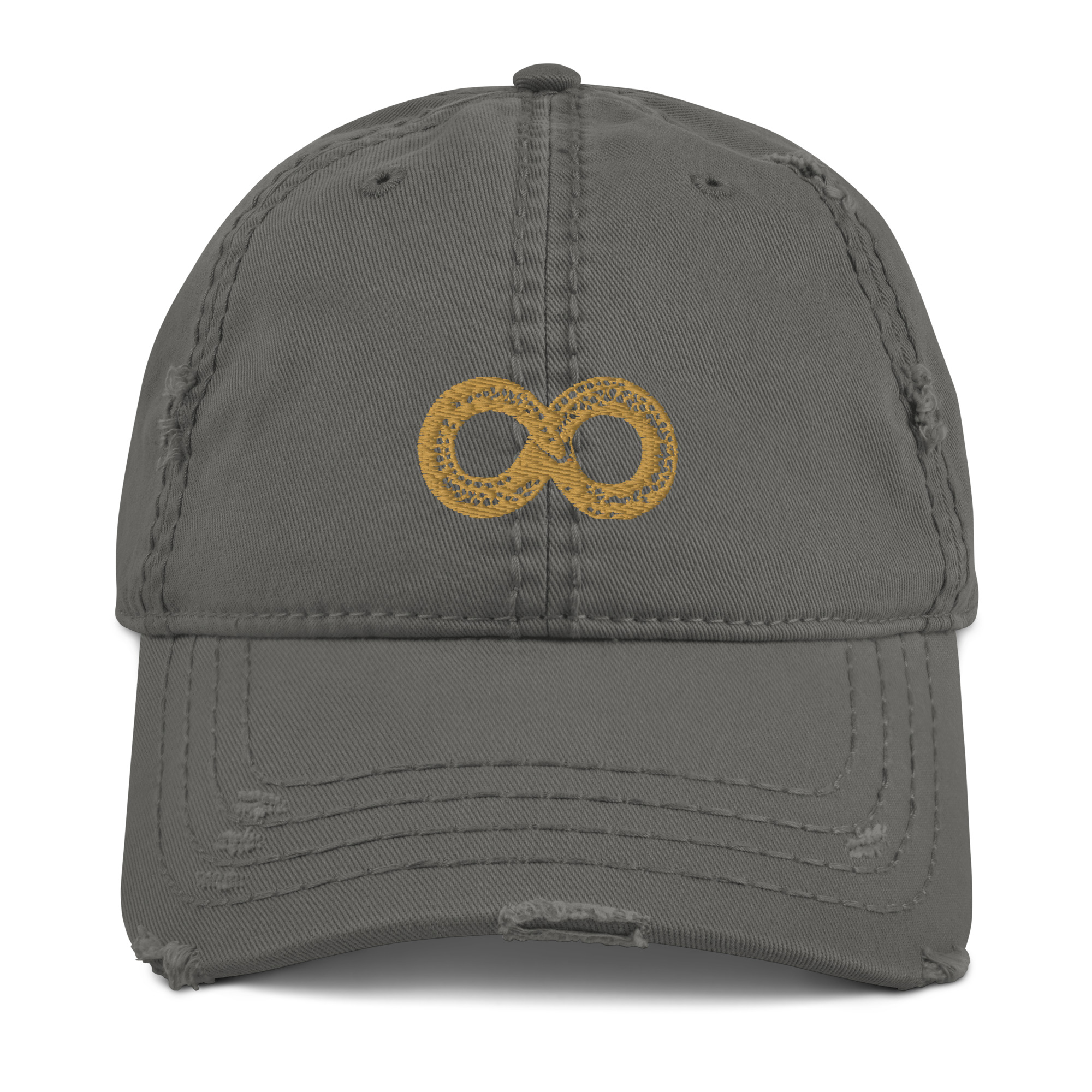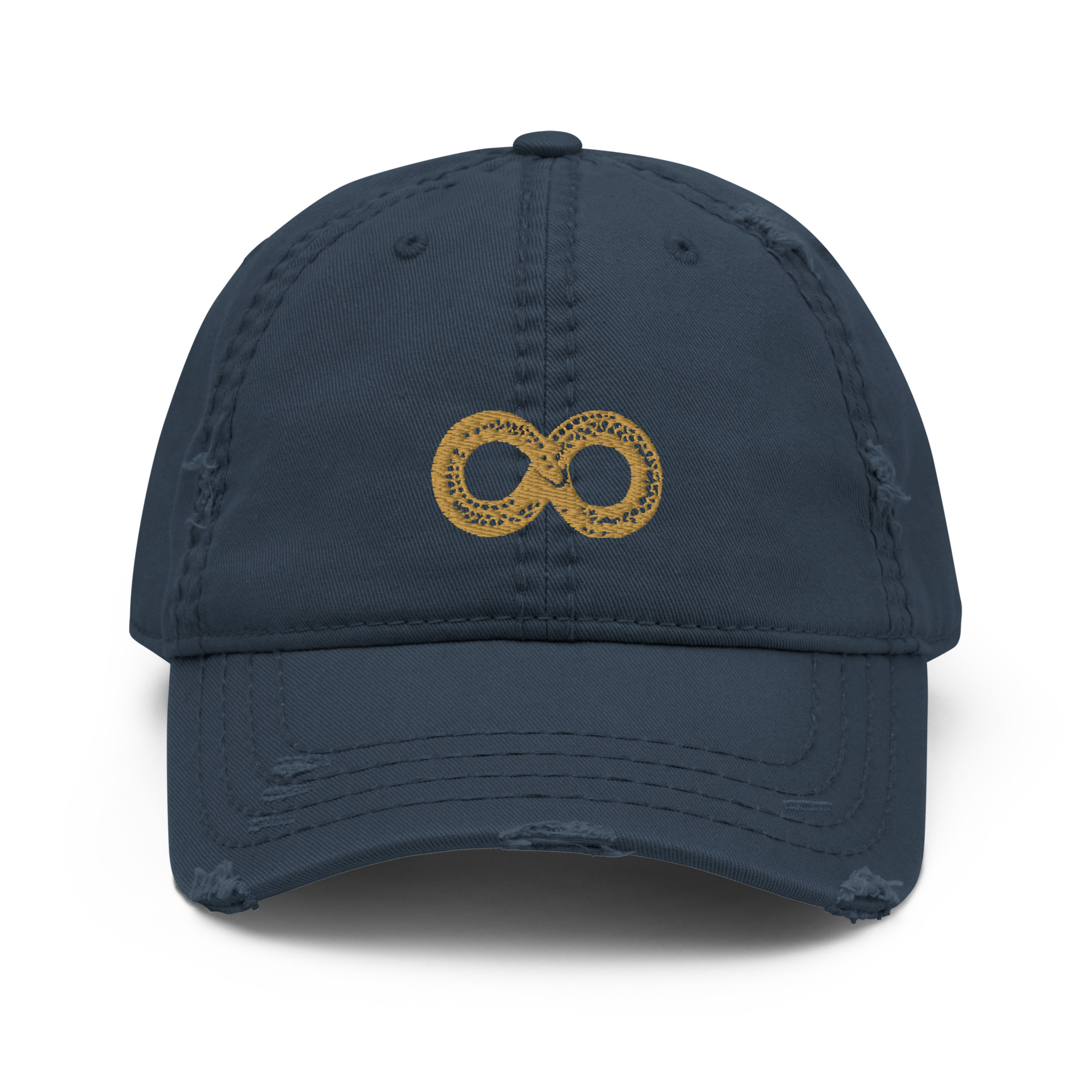 Expand your headwear collection with this fashionable dad hat. With a slightly distressed brim and crown fabric, it’ll add just the right amount of edge to your look. For a quick and easy outfit pair it with slacks, your favorite jeans, and a sports tee.