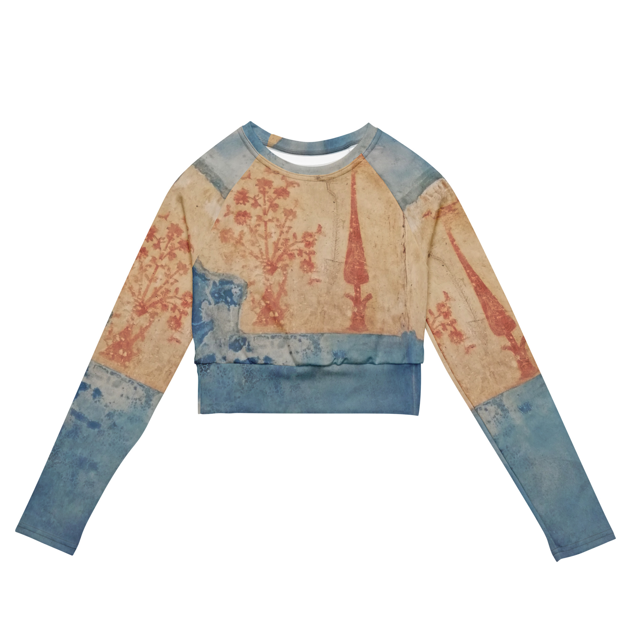 This long-sleeve crop top is made of recycled polyester and elastane, making it an eco-friendly choice for swimming, sports, or athleisure outfits. The crop top has a tear-away care label and a wide, double-layered waistline band for a comfortable fit.